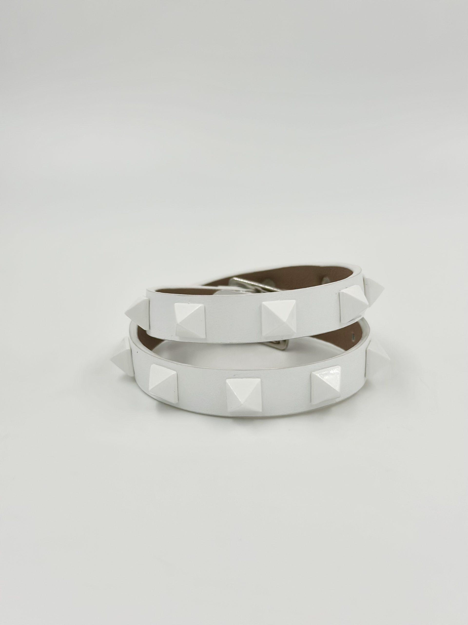 Минималистичная, при этом интересная по форме и лаконичная модель. Браслет в два оборота с шипами в тон кожи.